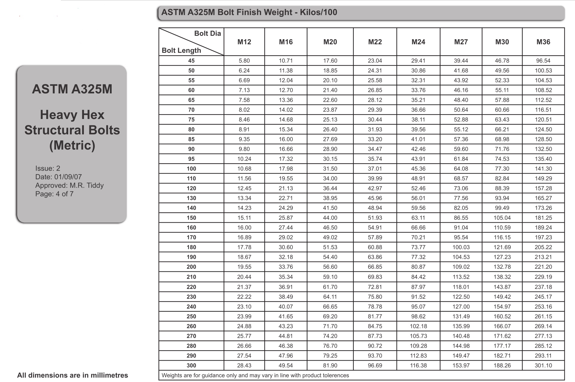 This specification covers two types of quenched and tempered, steel, metric heavy hex structural bolts having a minimum tensile strength of 830 MPa (Note 1).